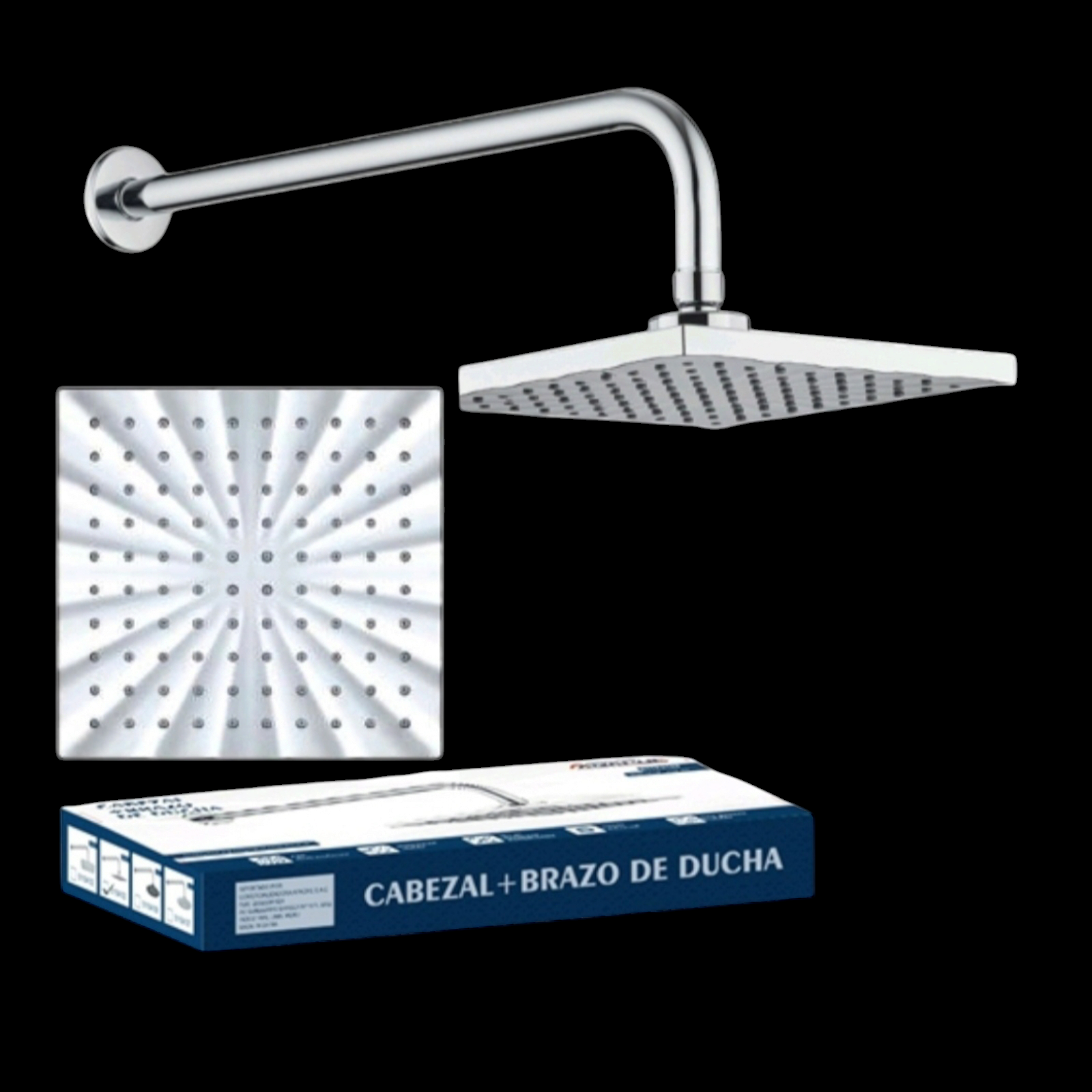 Cabeza Ducha Española cuadrado ABS 20cm con Brazo de 40cm Acero