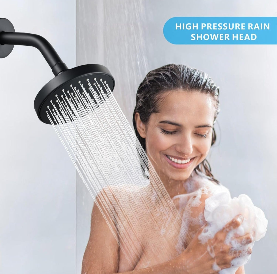 Cabezal de ducha redonda de 10cm ABS Negro Mate con brazo16cm ABS
