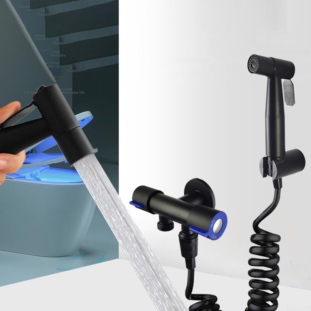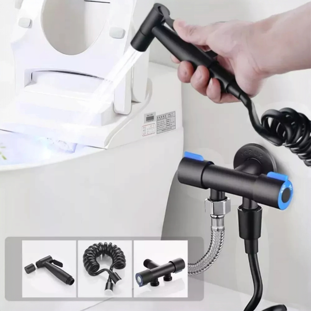 Ducha bidet negro mate con válvula desviador doble, todo en acero, manguera retráctil de alta calidad, incluye soporte de pared y Canopla. Este producto cuenta con las garantías necesarias y de acero para mayor durabilidad. Es una ducha bidet pesada que busca aportar un plus de resistencia a cualquier ducha del mercado.