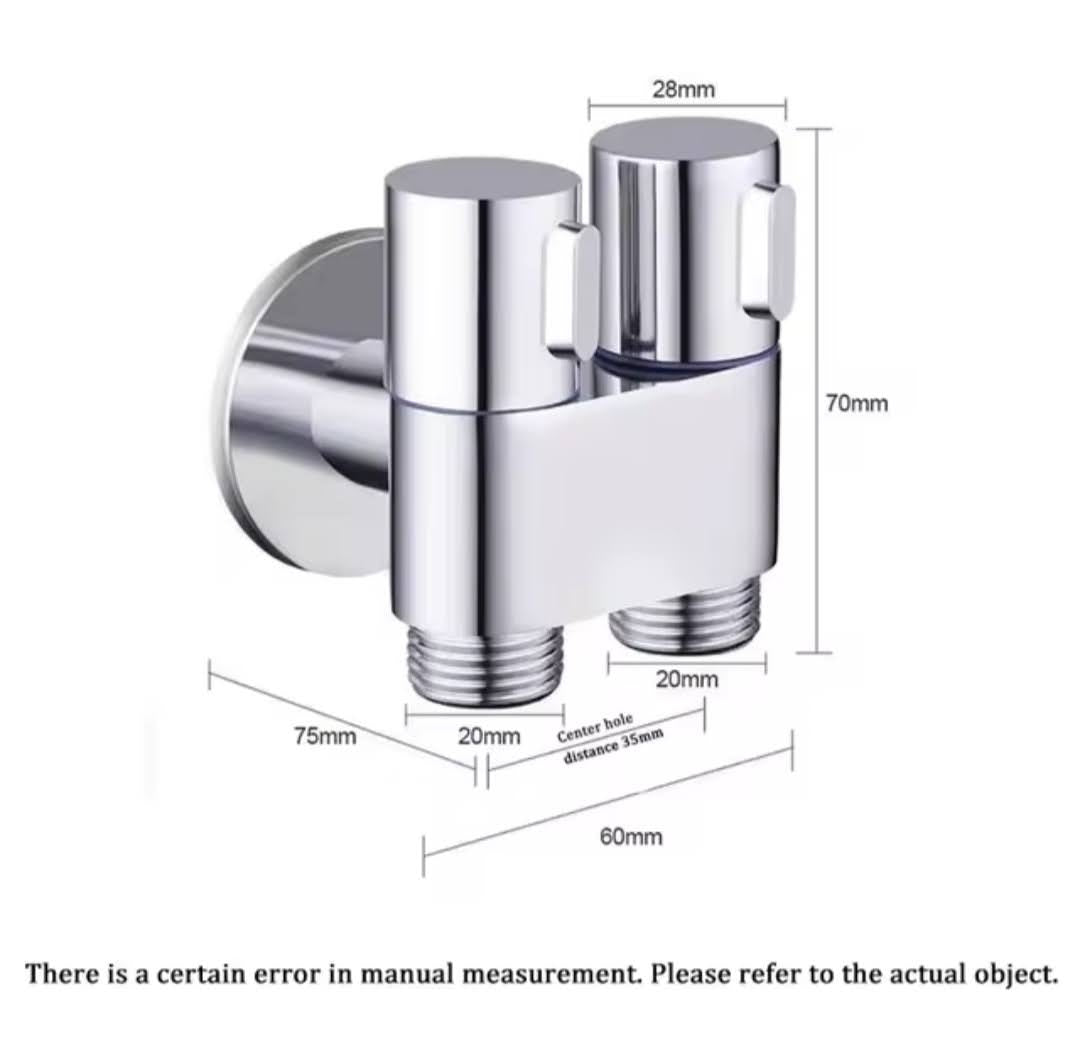 Válvula Doble Angular para Bidé o Inodoro Acero Pesado Cromado